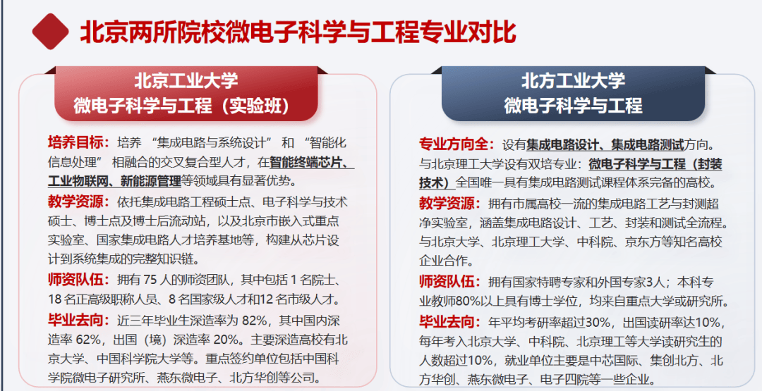 开设微电子科学取工程专业的院校不少,我们梳理了北工大和北方工大2所院校该专业的区别和联系,家长考生能够对比选择。