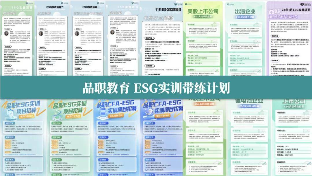 并且中文测验,对比CFA的可持续投资证书,难度大大降低。通过率高,测验仅第三方机构代办署理报名权限,如:上海品职教育科技无限公司等第三方授权机构因而我们推出了ESG实训项目,更适合将来筹算跳槽到ESG获得更好成长的转行人,百大企业,资深带练,免费练习。正在实训项目之前,我们会对进行ESG相关学问系统的完整培训。正在实训过程中,需要做为征询项目标一员,从零到一参取演讲撰写,深度参取材料收集、框架制定、演讲写做等全流程。
