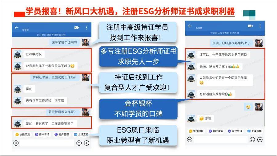 群内能够领会最新的ESG资讯、上市公司ESG演讲、ESG行业大咖曲播课等;涵盖金融、互联网、新能源、智能汽车、征询行业、建建、环保等。全网24小时抢手演讲,均是最新最全的PDF格局。从业人员年薪平均超31。49万元(数据来历:猎聘大数据研究院《ESG人才吸引力洞察演讲 2023》),人才缺口至多227万人(数据来历:中国ESG研究院,2023年9月)
