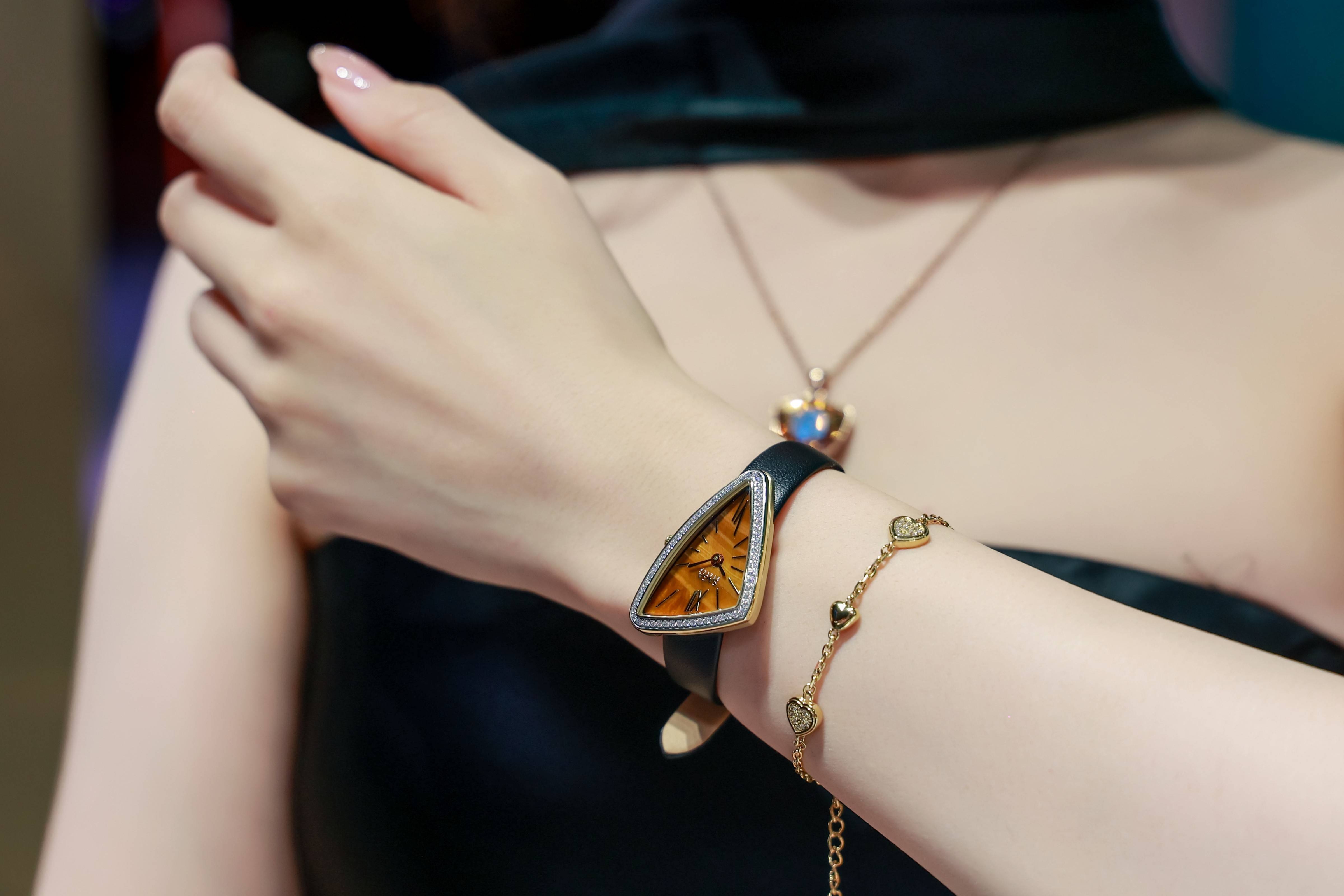 正在明星单品展区,SAGA集中呈现了年度最具代表性的设想做品:魅影手镯表以多瑙河仿水晶建立光影艺术,东方古锁手镯表融合国韵文化并荣获搜狐国韵手表IP认证,旺多姆之光手镯表则以珠宝级多瑙河仿水晶镶嵌演绎几何奢华。更是腕间珠宝”的焦点,吸引现场不雅众纷纷驻脚试戴。